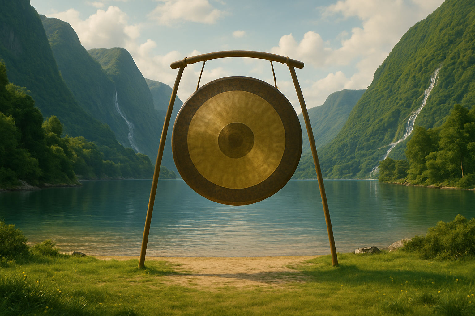 Large Gong in Brown Antique Stand - 80cm - Black - pattern